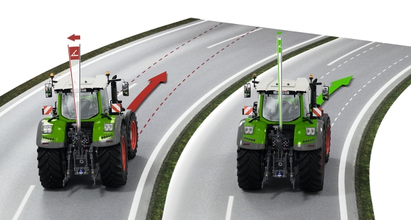 At travelling speeds above 20 km/h, FSC automatically reduces the lateral tilt of the tractor via a special control of the front axle suspension and actively suppresses rolling when cornering