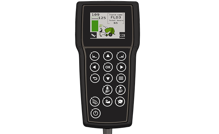 Fendt-vastekamerpersen zijn voorzien van overzichtelijke bedieningsterminals, die het bedienen en instellen van de pers gemakkelijk maken. Deze handzame kastjes zijn gemakkelijk en snel in de trekkercabine te installeren. De lcd-displays zijn ook bij direct zonlicht goed af te lezen. Door de duidelijke opschriften van de toetsen is de bediening intuïtief.