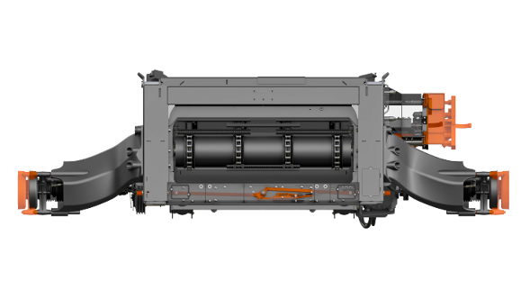 Bęben doprowadzający RotorFeeder 600 mm przekazuje zbierany materiał od dołu do rotorów, znacznie przyczyniając się do optymalnego efektu omłotu. Prędkość bębna RotorFeeder jest regulowana zależnie od prędkości obrotowej rotora proporcjonalnie i samoczynnie przez system oraz wynosi zawsze 70% prędkości rotora. Dzięki optymalnie dopasowanej prędkości obrotowej rotora oraz doskonale skonstruowany obszar przejścia słomy jest ona trwale chroniona RotorFeeder zużywa również znacząco mniej mocy. Przez optymalne przejście zapewniony jest stały przepływ materiału.