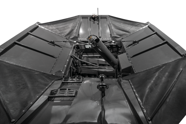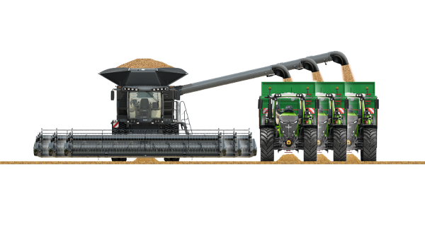 Con Fendt IDEAL, se puede elegir entre una distancia de carga de 7,6 m, 9,15 m o 10,6 m, medida desde el centro de la máquina. Las dos versiones grandes también se pueden plegar detrás de la cosechadora en posición de transporte. Para evitar pérdidas por goteo innecesarias al interrumpir el proceso de sobrecarga, se instala una pestaña en el extremo del tornillo. Este se abre o cierra automáticamente mediante un cilindro hidráulico al iniciar y detener el proceso de sobrecarga, evitando así de forma fiable que la valiosa cosecha se escurra. Para lograr un buen rendimiento de sobrecarga en la trilla de semillas de hierba, también se desarrolló un kit de semillas de hierba especial para IDEAL. Esto evita que las semillas de hierba se atasquen y permite vaciar completamente el depósito de granos.