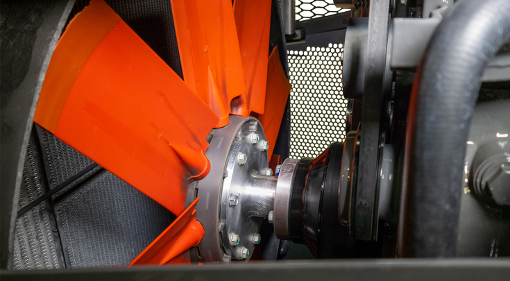 El ventilador autorreversible programable opcional mantiene el paquete de enfriamiento limpio y libre de residuos durante largas jornadas de aplicación sin interrupciones.