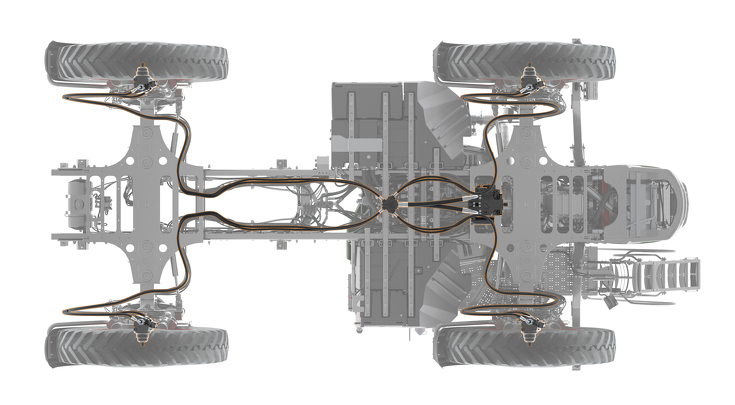 El sistema de compensación de giro de las ruedas proporciona un control independiente para cada rueda, accionando las ruedas exteriores más rápido para asistir en giros cerrados y reducir la alteración del suelo y los daños al cultivo.