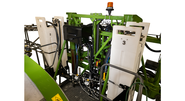 La inyección directa Fendt aumenta tu flexibilidad en el lote. Ya sea para adyuvantes o productos químicos, este sistema te permite inyectar productos de dosis variable en el sistema antes del botalón, reduciendo el riesgo de una posible contaminación cruzada del tanque principal.