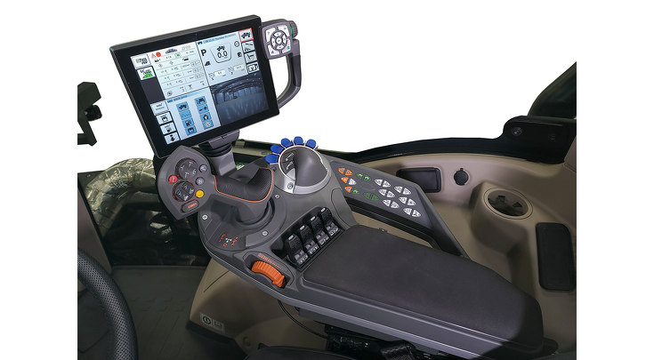 El Fendt Varioterminal integrado ofrece control intuitivo y monitoreo de las funciones de la máquina, incluyendo chasis, dirección, gestión de datos y funcionalidades del sistema.