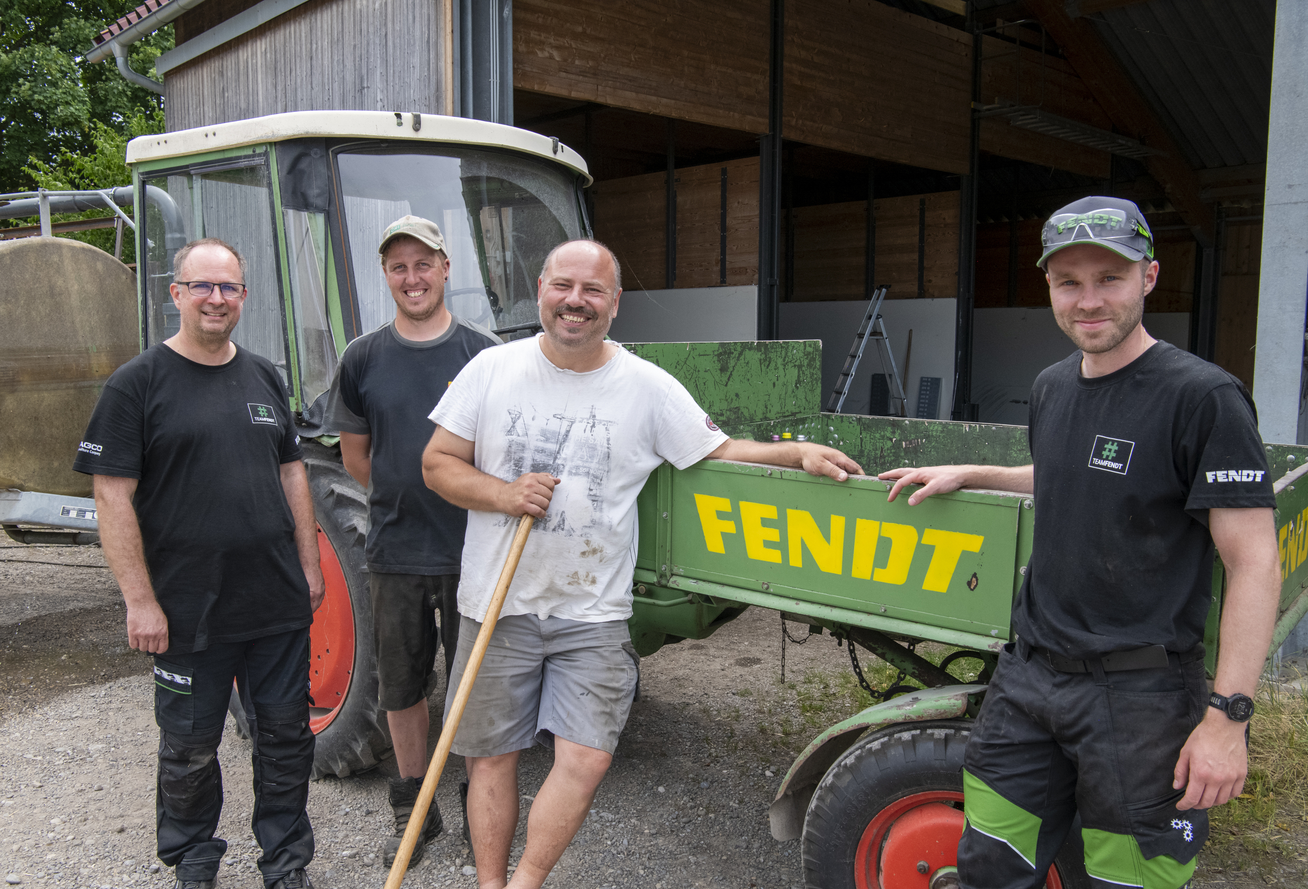Futter mischen, Gras säen und Traktor fahren: An zwei Aktionstagen im April und Juni tauschten 27 Fendtlerinnen und Fendtler Maulschlüssel und Maus gegen Mistgabel und Ampferstecher. Auf acht Allgäuer Bauernhöfen packte jeder von ihnen dort an, wo helfende Hände gebraucht wurden. Die Aufgaben waren dabei so vielseitig wie die Landwirtschaft selbst und variierten je nach Betrieb. Das Ziel des Aktionstags #TEAMFENDT: Landwirtinnen und Landwirte bei ihren alltäglichen Aufgaben unterstützen und gleichzeitig wertvolle Einblicke in die Landwirtschaft gewinnen. Die Teams bauten Zäune oder halfen Gülle auf den Maisacker auszubringen, sie fütterten Kühe oder misteten Pferdeställe aus.