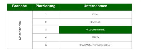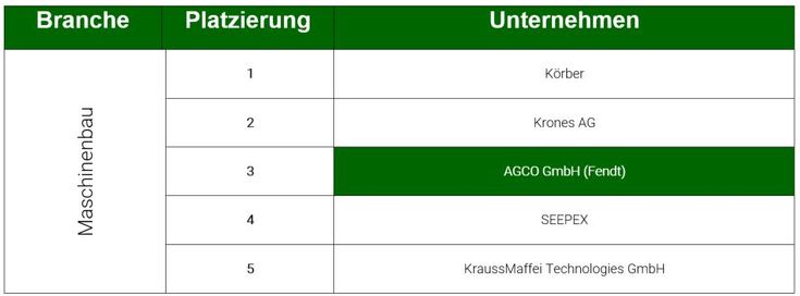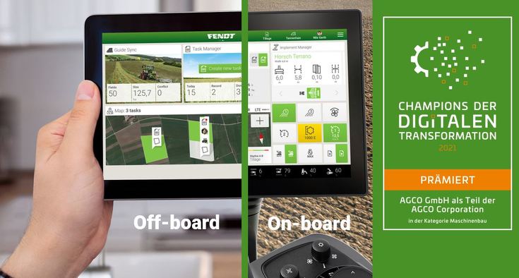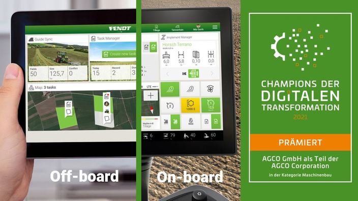 Mit einer Gesamtbewertung von 4,0 von 5,0 möglichen Punkten gehört AGCO/Fendt zu den 29 von insgesamt 127 Teilnehmern, die in diesem Jahr als „Champions der Digitalen Transformation“ auf der Siegerehrung in Berlin am 16. September prämiert wurden. In der Kategorie „Maschinenbau“ hat das Unternehmen damit die drittbeste Bewertung in der mehrdimensionalen Analyse erreicht. Der Grund für die Auswahl als eines der besten Unternehmen ist die: „ständige Rückkopplung mit Kunden für digitale Lösungen".