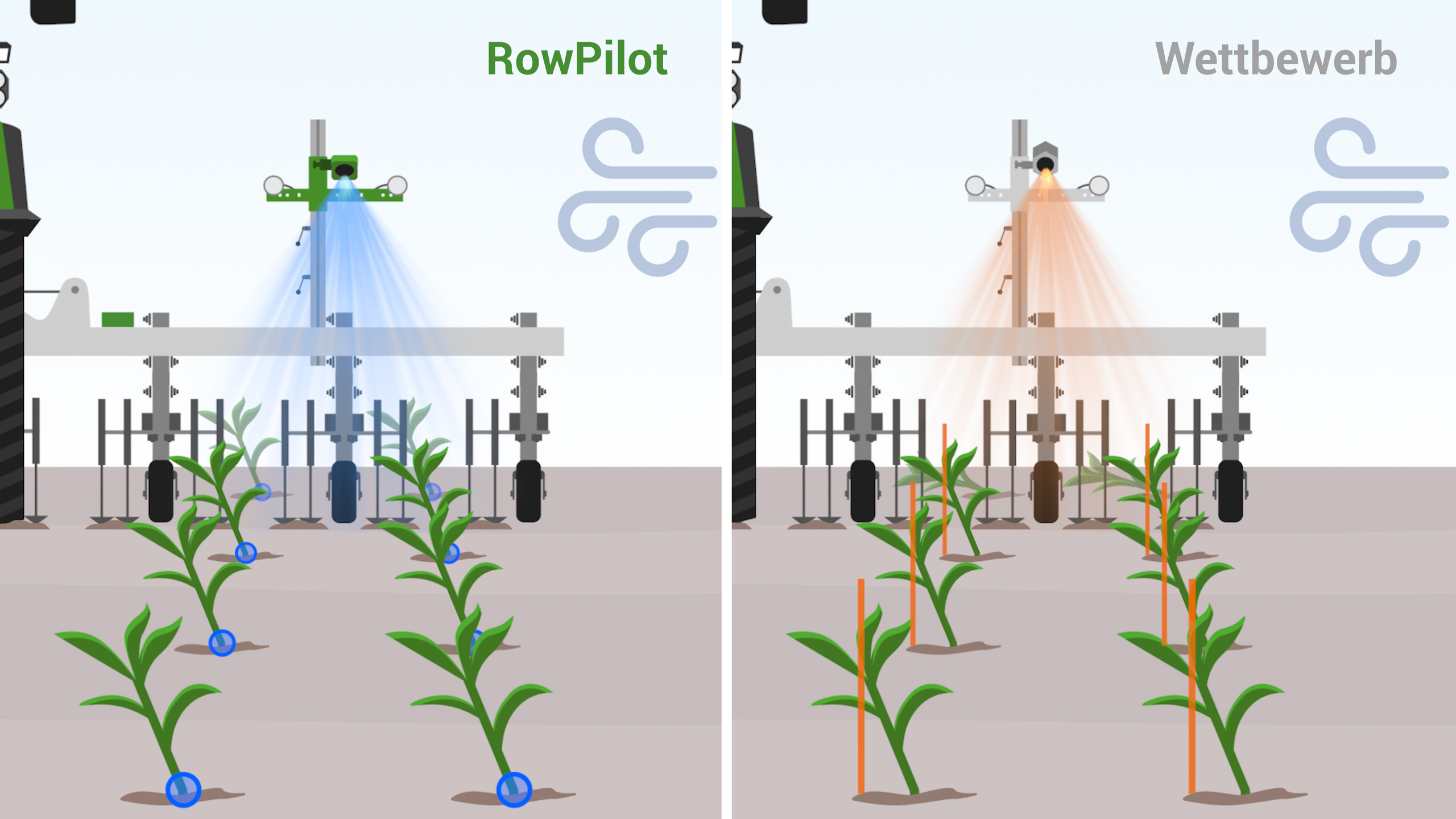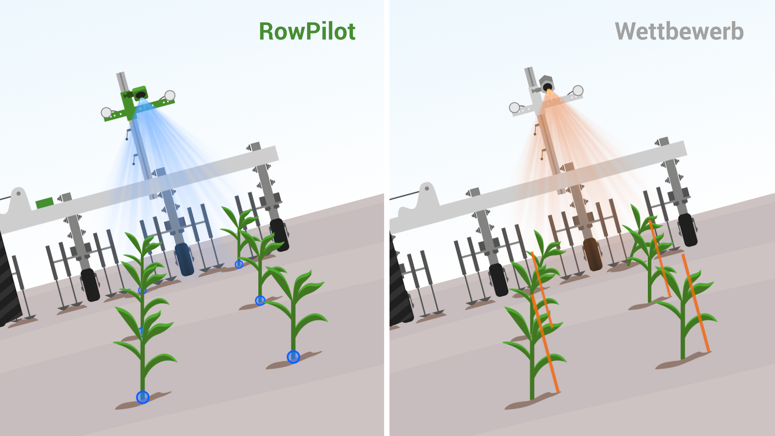 Kameragestützte Systeme arbeiten bisher dann präzise, wenn Pflanze, Boden und Beikräuter eindeutig unterscheidbar sowie die Reihen eindeutig erkennbar sind. Durch Faktoren wie Seitenwind oder Fahrten am Hang können Pflanzen sich zur Seite neigen und die konventionelle Reihenerkennung gerät an ihre Grenzen. Gleichermaßen erschweren inhomogene Bestände auf dem Feld die Reihenerkennung, sei es durch Verunkrautung, fehlende Pflanzen oder unterschiedliche Wachstumsstadien.