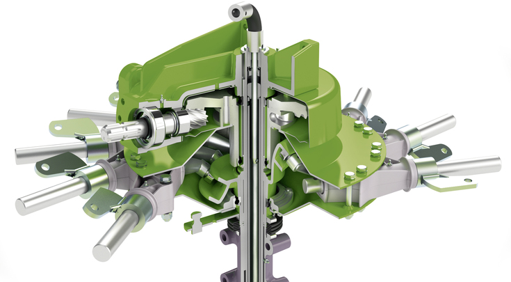 Die Zinkenarme der Fendt Former Schwader sind tangential angeordnet. Das sorgt für beste Rechqualität und eine optimale Futteraufnahme auch bei höheren Geschwindigkeiten. Da die Doppelzinken von unten in den Zinkenträger geschraubt sind entsteht eine glatte Oberfläche, an der kein Futter hängen bleibt. Außerdem ist die Bewegungsfreiheit der Zinken an den Windungen somit völlig uneingeschränkt. Die Zinkenarme lassen sich nach Entfernen eines einzelnen Splints schnell abnehmen. Die Steuerwellen der Zinkenarme können einzeln ausgetauscht werden, ohne die Schwaderglocke zu zerlegen. Dazu müssen lediglich einzelne Schrauben gelöst werden.