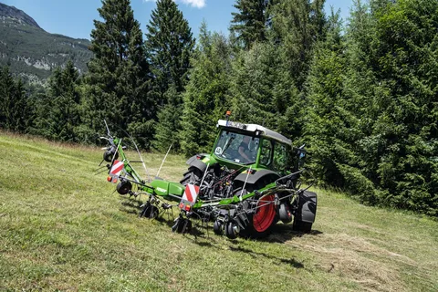 Die Vier und Sechs-Kreisler der Fendt Twister-Leichtbau-Modelle mit Nachlaufeinrichtung (DN) und insbesondere der Fendt Twister 401 DS mit starrem Anbau wurden speziell für bergige Regionen entwickelt. Die Kombination aus kompakter Bauweise, geringem Gewicht, einem tiefliegenden Zugpunkt und kurzem Anbau zeichnet alle Modelle der beiden Baureihen aus. So erreichen sie ein optimales Nachlaufverhalten und arbeiten in Hanglagen besonders stabil.