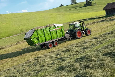 Der kompakte Tiefgangladewagen Fendt Tigo S wurde speziell für den Einsatz in Höhen- und Hanglagen konstruiert. Ein niedriger Schwerpunkt in Kombination mit der extra breiten Spur steigert die Standfestigkeit der Ladewagen. Erstmalig bietet Fendt in dieser Klasse mit einem Ladevolumen von 22 m³ bis 29 m³ optional die Loadsensing Funktion an. Mit der Loadsensing Funktion können Fahrerinnen und Fahrer den Ladewagen feinfühliger steuern. Dies steigert die Effizienz des Gespanns, den Arbeitskomfort und die Hydraulik des Traktors wird weniger belastet. Die Loadsensing Funktion kann bei bereits gekauften Wagen nachgerüstet werden. Standardmäßig sind die Ladewagen mit einem Druckumlaufsystem ausgestattet.
