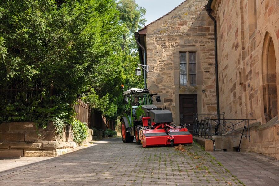 Die kompakten Maße sowie die technische Ausstattung des Fendt e107 V Vario ermöglichen einen ganzjährigen Einsatz des E-Traktors. So kann die Maschine im Winterdienst genau wie im Wein- oder Obstbau oder kommunalen Aufgaben wie Kehren, Mulchen oder Mähen eingesetzt werden. Das Thermomanagement sorgt dafür, dass die Batterie unabhängig von der Jahreszeit oder Witterung immer mit der optimalen Temperatur betrieben wird. Dies schont die Batterie und verlängert deren Lebensdauer.