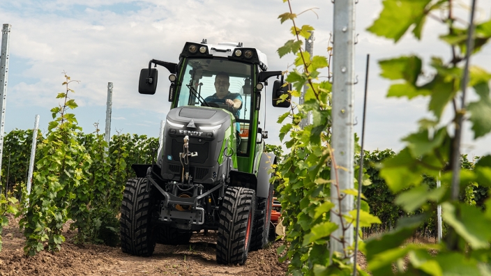 Das Modell Fendt e107 V Vario hat eine Außenbreite ab 1,07 Metern sowie eine Höhe von ca. 2,45 Meter. Die Kombination aus kompakten Maßen, dem Fendt Variogetriebe und abgasfreiem Arbeiten ermöglicht neben Einsätzen in Weinbergen mit engstehenden Zeilen auch die Einfahrt in Hallen oder Folientunnel. Ferner kann der E-Traktor auch im kommunalen Bereich zum Einsatz kommen, beispielsweise bei der Pflege von Radwegen.