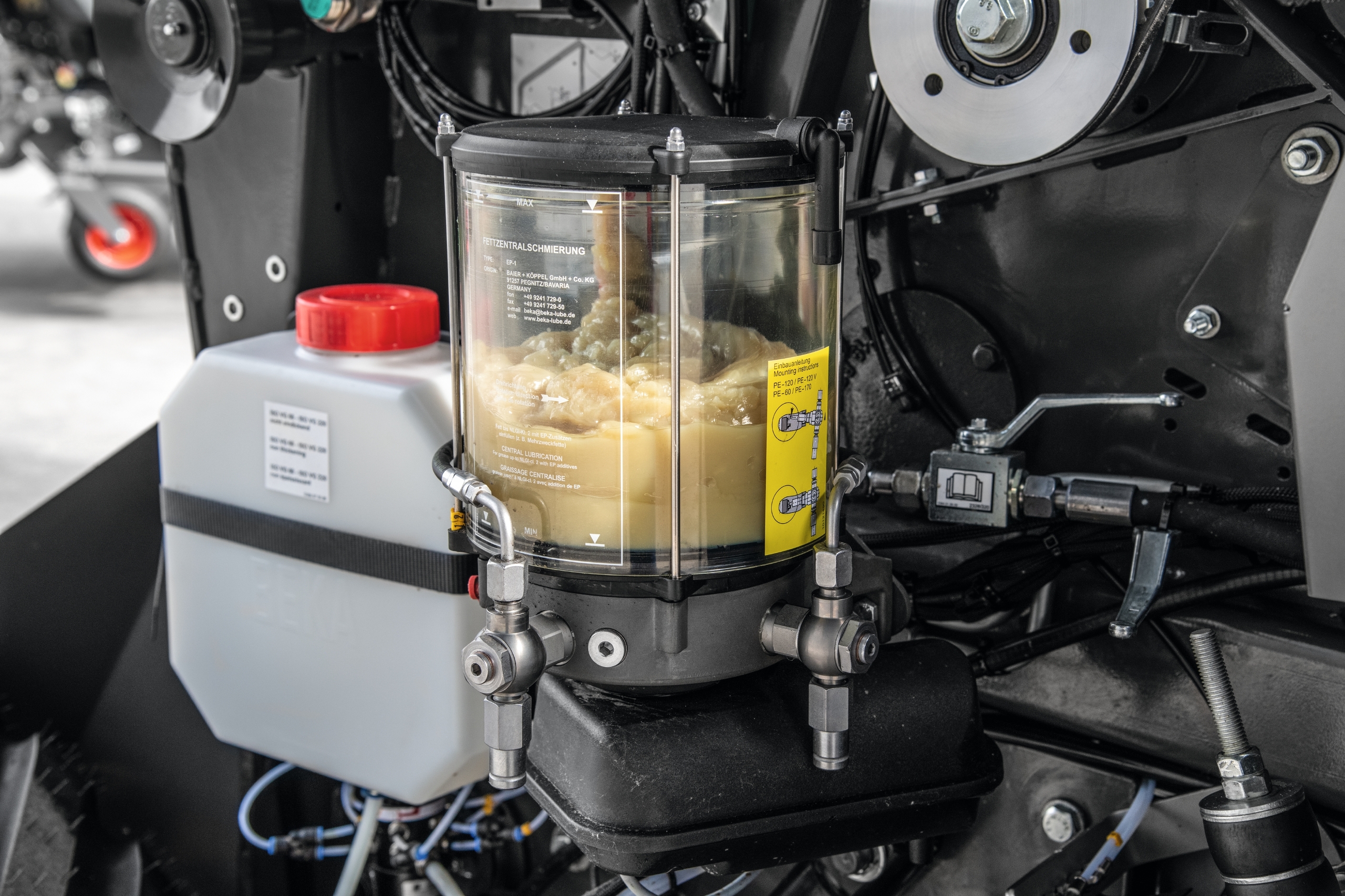 Fendt was the first manufacturer on the market to develop automatic bearing lubrication specifically for all variable chamber Fendt round balers. The unique design also reaches the moving swing rollers inside the bale chamber. A specially designed tunnel guides the lubrication lines safely and securely to the hard-to-reach rollers and effectively protects the lines from fatigue. Automatic lubrication reduces the maintenance time and significantly increases the service life of the roller bearings.