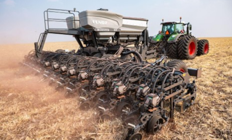 Plantadeira Fendt Momentum e o trator Fendt 942 Vario durante o plantio de soja na Fazenda Recanto, em Sidrolândia, no Mato Grosso do Sul