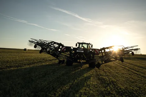 O controle ISOBUS também permite o levantamento individual dos rotores e um trabalho especialmente preciso no campo e nas cabeceiras, além de reduzir significativamente as perdas de forragem. Além disso, o enleirador conta com o elevador de cabeceira ajustável. A altura de elevação dos rotores na cabeceira pode ser ajustada em cinco estágios e é configurada no terminal. O controle de sequenciamento para os rotores dianteiro e traseiro está disponível de série e com acabamento limpo.