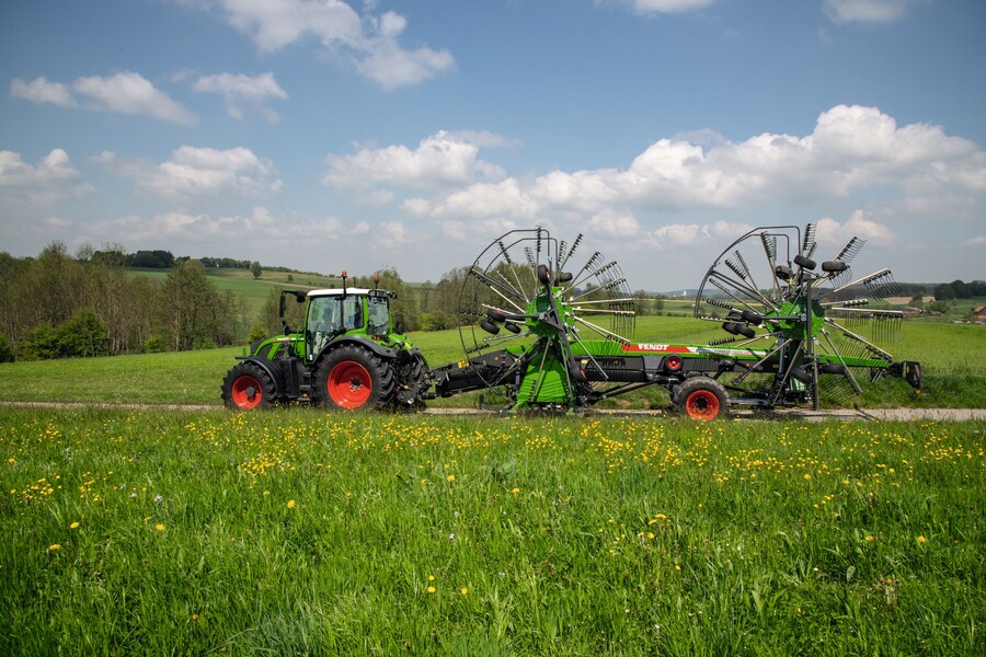 Para um resultado ideal na leira, o Fendt Former adapta a altura de trabalho dos dentes à velocidade de operação através do ajuste automatizado da altura de enleiramento flexHIGH. Se a velocidade de avanço do trator aumenta, o sistema dependente da velocidade abaixa os rotores e regula a distância entre os dentes e o solo. Isso evita perdas de enleiramento. Se a velocidade de operação cair, o sistema eleva os rotores para evitar a entrada de sujeira. Isso aumenta significativamente a produção da área, mesmo com grandes quantidades de forragem. O ajuste inteligente reduz as perdas de forragem, bem como a contaminação da forragem à medida que a velocidade aumenta.