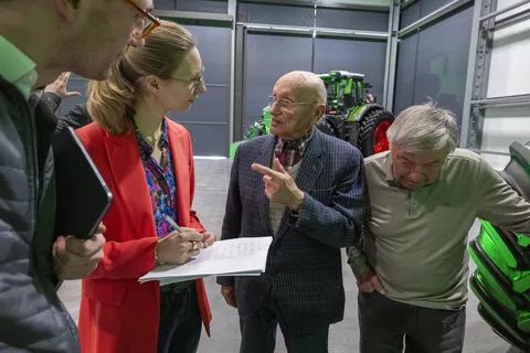Ab 13 Uhr nimmt der Verkehr rund um das Fendt Forum deutlich zu. Autos, Fahrräder und Fußgänger treffen ein, finden sich zu kleinen Gruppen zusammen und unterhalten sich. Sie alle besuchen die Fendt Ehemaligenfeier im Fendt Forum und schätzen die Möglichkeit, alte Kolleginnen und Kollegen wiederzutreffen, aus denen im Laufe der Jahre Freunde geworden sind. Einige Gäste haben das Unternehmen erst kürzlich verlassen, andere genießen seit über 30 Jahren ihren Ruhestand. Für viele ist der Besuch bei Fendt einer der Höhepunkte des Jahres, auf den sie sich schon lange freuen.