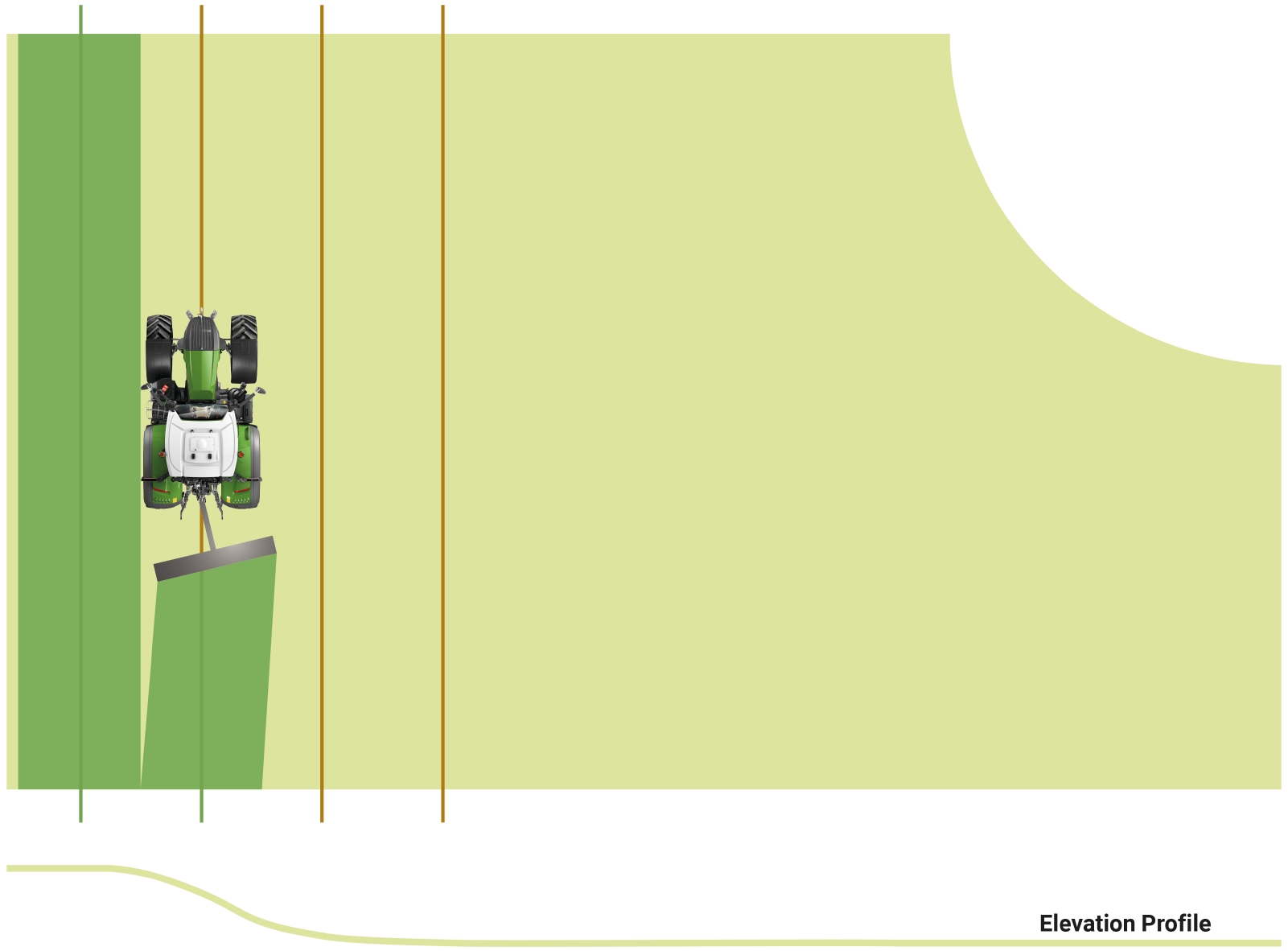 Bei Arbeiten am Hang können gezogene Anbaugeräte trotz Spurführung durch ihr Eigengewicht abdriften und so Überlappungen in der Bearbeitung erzeugen. Fahrerinnen und Fahrer müssen dann manuell in die Spurführung eingreifen und den Kurs korrigieren. So müssen sie beispielsweise Spurlinien verschieben, um das Anbaugerät optimal im Anschluss an die vorherige Spur zu halten. Mit der neuen Option Fendt Implement Slope Compensation können Fahrerinnen und Fahrer eine Übersteuerung der Sollspur vorgeben. Dazu stellt der Fahrer einen Korrekturwert pro Grad Hangneigung ein. Der Traktor korrigiert dann automatisch in Abhängigkeit von der aktuellen Hangneigung seinen Kurs, sodass das Anbaugerät optimal seine Spuren abarbeitet. Dies steigert die Arbeitsqualität bei der Bodenbearbeitung und der Aussaat. Der Arbeitskomfort steigt, da ein manuelles Gegensteuern entfällt. Ein zweiter Receiver am Anbaugerät ist mit dieser Lösung nicht nötig.