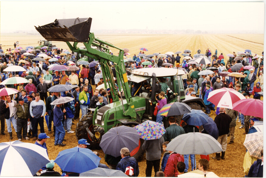 Näher dran geht kaum: Die interessierten Besucherinnen und Besucher des großen Fendt Feldtages in Wadenbrunn schauen sich die neuen Modelle aus der Nähe an.