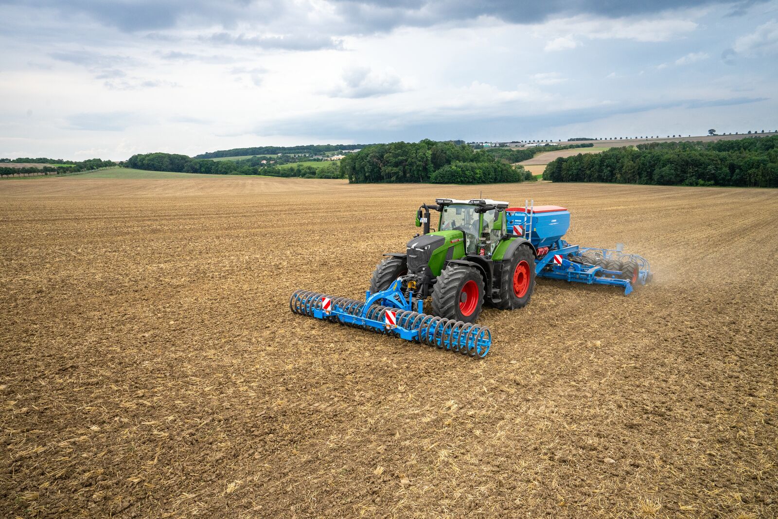 El Fendt 800 Vario con motor CORE80 funciona con suavidad dentro de su rango de trabajo principal, de 1100 a 1400 rpm. Alcanza su velocidad máxima de 60 km/h con solo 1450 rpm. El Fendt 832 Vario, el modelo más alto de la gama, ofrece un par máximo de 1680 Nm a partir de tan solo 1200 rpm, lo que garantiza una alta tracción y aceleración con un consumo mínimo de combustible. Además, el tratamiento posterior de los gases de escape se lleva a cabo mediante un catalizador de oxidación diésel (DOC), un filtro de partículas diésel (DPF) y una reducción catalítica selectiva (SCR), pero sin recirculación de los gases de escape. Esto también facilita el mantenimiento. El tractor cumple con todas las normas de emisiones exigidas a nivel mundial. En la UE, se trata de la norma de emisiones Stage V (Tier 5 Final).