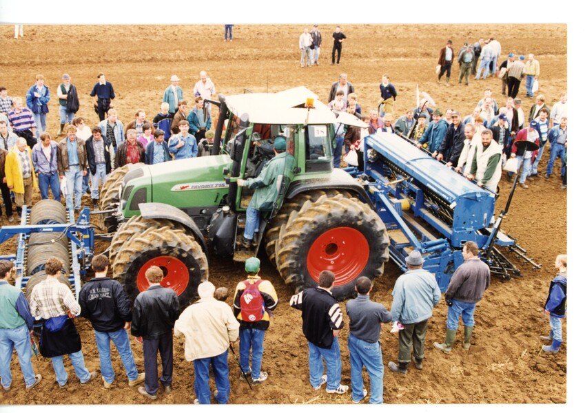 Es difícil acercarse más: los visitantes interesados en el gran día de campo Fendt Saaten-Union en Wadenbrunn observan de cerca los nuevos modelos.
