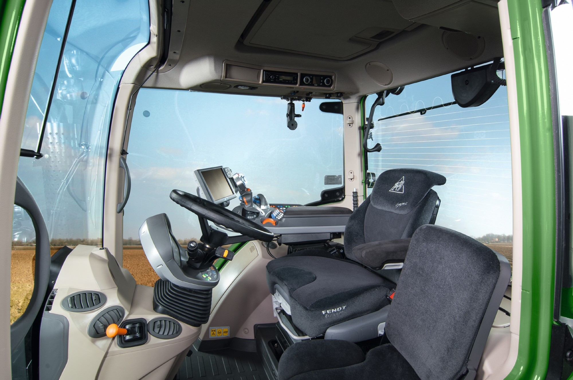 El nuevo diseño se basa en el principio de "la forma sigue a la función", que se reconoce claramente en la cabina Fendt VisioPlus, completamente nueva, con el revolucionario parabrisas curvado para una mejor visibilidad y el reposabrazos multifuncional para trabajar de forma ergonómica.