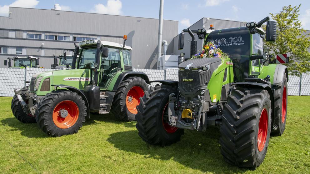 Celebración del Fendt 700 Vario número 100.000 con uno de los primeros clientes: Karl Heller