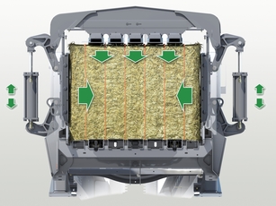 Fendt ha equipado sus empacadoras cuadradas con un muy robusto y eficiente grupo de transmisión para garantizar la mejor seguridad operacional. Además, el nuevo Rotor Cutter con las cuchillas del rotor dispuestas en “V” con 3 filas de púas garantiza una alta tasa de rendimiento y perfecta calidad de corte. El exclusivo sistema de empacado, con cámara de precompresión controlada mecánicamente, permite obtener pacas uniformes de gran densidad, todas iguales. La cámara de pacas principal se encarga de realizar una compresión sólida.