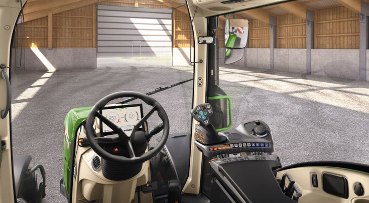 La filosofía de manejo intuitivo FendtONE combina por primera vez el manejo de la máquina y la comunicación directa con la oficina. Este concepto se complementa con un paquete de infoentretenimiento y un sistema de sonido 4.1 opcional. El nuevo lugar de trabajo del conductor incluye un salpicadero grande de 10", un reposabrazos con joystick multifunción y, dependiendo de la configuración, un terminal de 12". El reposabrazos, que va fijado al asiento, facilita los ajustes sin tener que realizar grandes movimientos. A esto se le añade un segundo terminal de 12" opcional, que puede retraerse a la mitad en el techo de la cabina. El joystick 3L abre nuevas posibilidades.