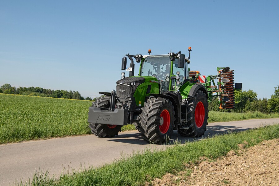 Los tractores estándar pasan alrededor del 50% de sus horas de funcionamiento en carretera o en transporte. El amplio concepto de chasis y seguridad, así como la dirección Fendt Reaction, ya se conocen del Fendt 700 Vario Gen7 y convierten a esta serie en un especialista del transporte. Esto incluye el concepto de bajas revoluciones Fendt iD, seguridad de frenado adicional gracias a un freno hidráulico adicional de nuevo desarrollo y libre de desgaste, el asistente de frenado de remolque (TBA) y el freno de estacionamiento automático. En las versiones de alta velocidad de 60 km/h a partir del Fendt 724 Vario Gen7.1, el soporte antivuelco Fendt Stability Control, que reduce específicamente los movimientos de balanceo, completa el paquete. Cuando está correctamente configurado, el sistema de regulación de la presión de los neumáticos totalmente integrado reduce el consumo de combustible en carretera.