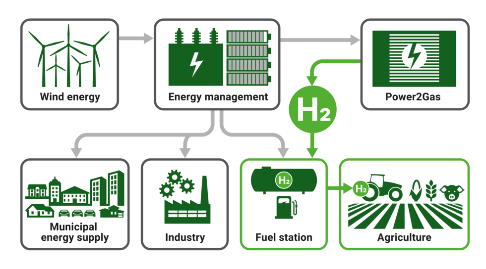 En el proyecto conjunto H2Agrar y Green H2 Hub-Haren, el estado de Baja Sajonia está financiando el desarrollo de una infraestructura de hidrógeno en la región modelo de Emsland. El hidrógeno verde se produce con la ayuda de la energía renovable de un parque eólico local. Esto se utilizará principalmente en el sector de la movilidad y en la agricultura. Para ello, se está construyendo una infraestructura con su propio parque de estaciones de servicio para combustibles alternativos como el hidrógeno, pero también estaciones de recarga electrónica. AGCO/Fendt está trabajando en el proyecto junto con CEC Haren GmbH & Co. KG, Röchling Engineering Plastics SE & Co. KG, la Universidad Técnica de Braunschweig y la Universidad de Ciencias Aplicadas de Emden/Leer.