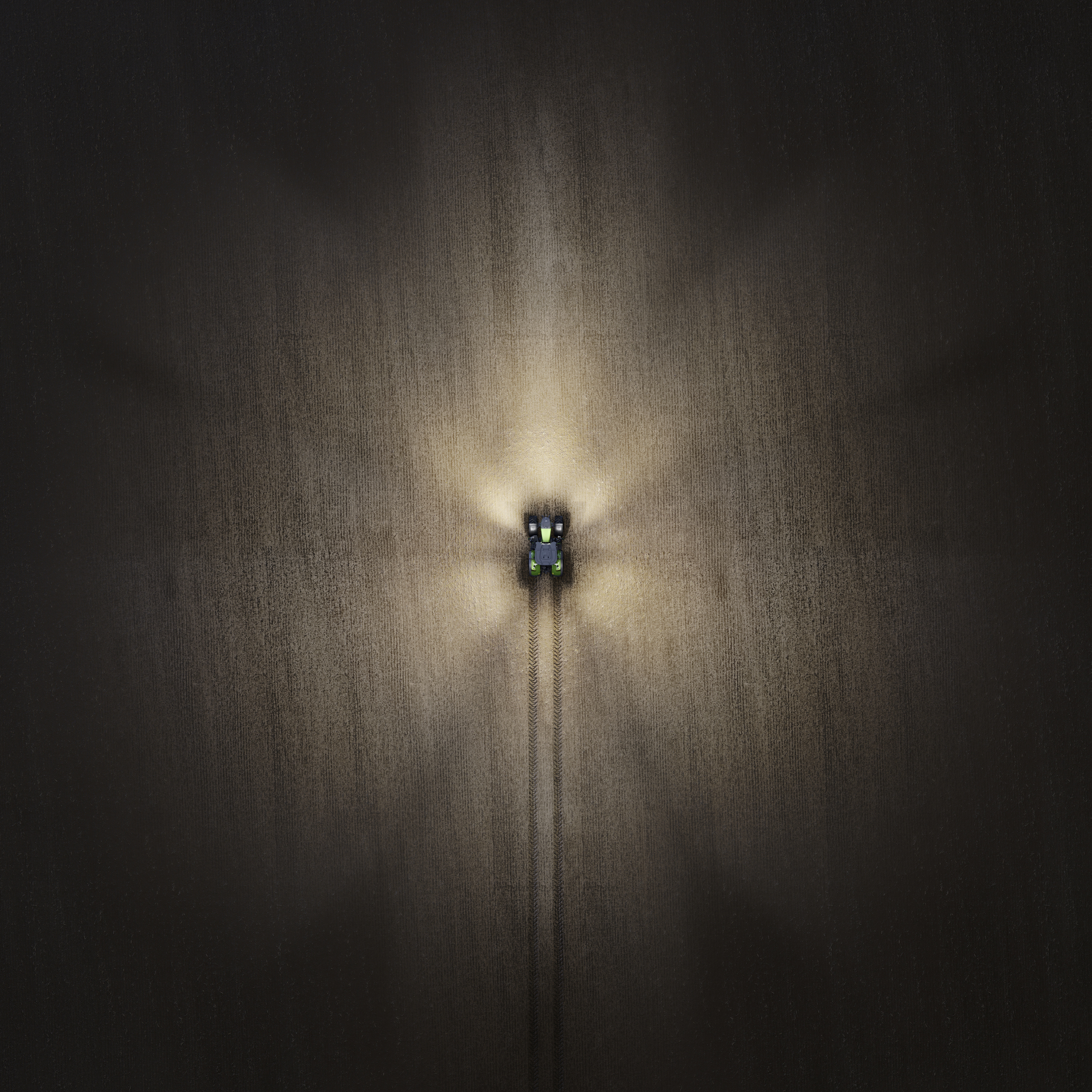 Näkyvyys eteenpäin sekä näkymä työkoneeseen ja ympäröivälle alueelle ovat keskeisiä työn tuloksen jatkuvassa valvonnassa. LED-työvalot ovat saatavilla kahtena varustevaihtona: Vision ja UltraVision. Molemmissa vaihtoehdoissa voidaan ohjaamon kattoon asentaa kahdeksan tai 12 ajovaloa. UltraVision-vaihtoehdossa traktori valaisee alueen 4 400 lumenilla per työvalo, ja työvalot ovat himmennettävissä viidessä portaassa. Tämä toiminto on erityisen hyödyllinen, kun useat koneet työskentelevät samalla alueella. Vision-varustevaihtoehto tarjoaa 1 000 lumenia per valo. Kaikki valot, mukaan lukien vilkkuvalo, on kiinteästi asennettu ohjaamon kattoon ja sijoitettu optimaalisesti maataloustöihin, kuten pelto- tai sadonkorjuutöihin, sekä käyttöön siilolla, metsässä tai rakennustyömailla, jotta valaistus on optimaalinen ja työskentely häikäisemätöntä.