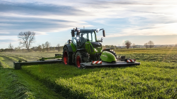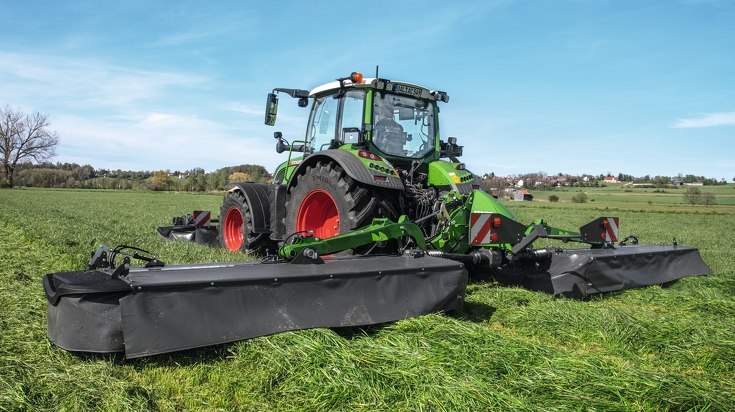 La nouvelle génération de faucheuses à disques avant, ainsi que les faucheuses à disques arrière ont été entièrement redéveloppées. La conception légère de la Fendt Slicer 310 F permet d'économiser jusqu'à 60 kilogrammes de poids par rapport au modèle précédent. Pour la combinaison de faucheuse arrière, le nouveau design permet de gagner jusqu'à 350 kilogrammes par rapport au modèle précédent.