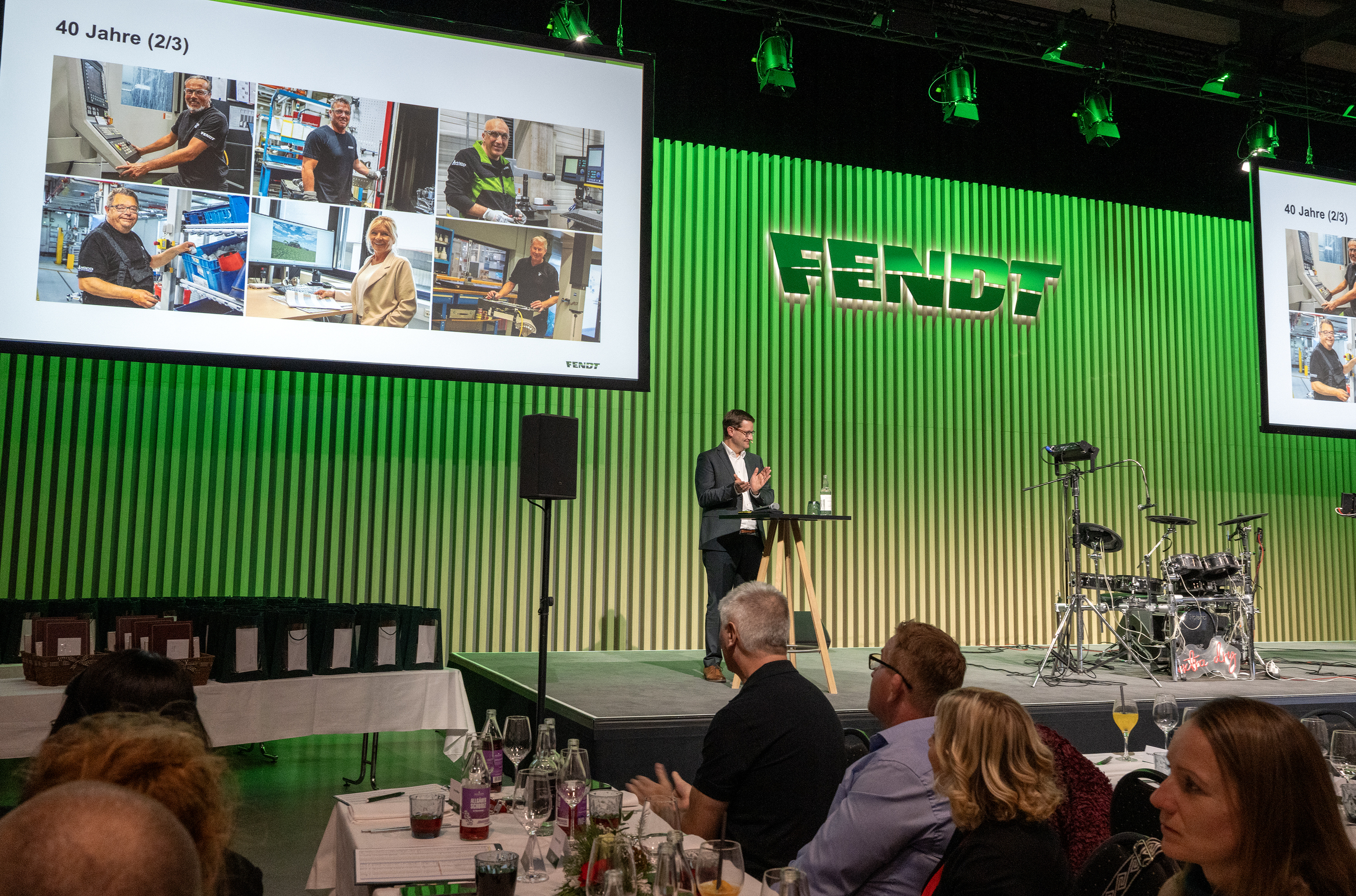 On Tuesday, 20 November, the Fendt Forum was brightly lit until late in the evening. Under the already decorated Christmas tree, 155 Fendt employees celebrated their long service at the Fendt Forum. The jubilarians celebrated 10, 25 and 40 years at Fendt.