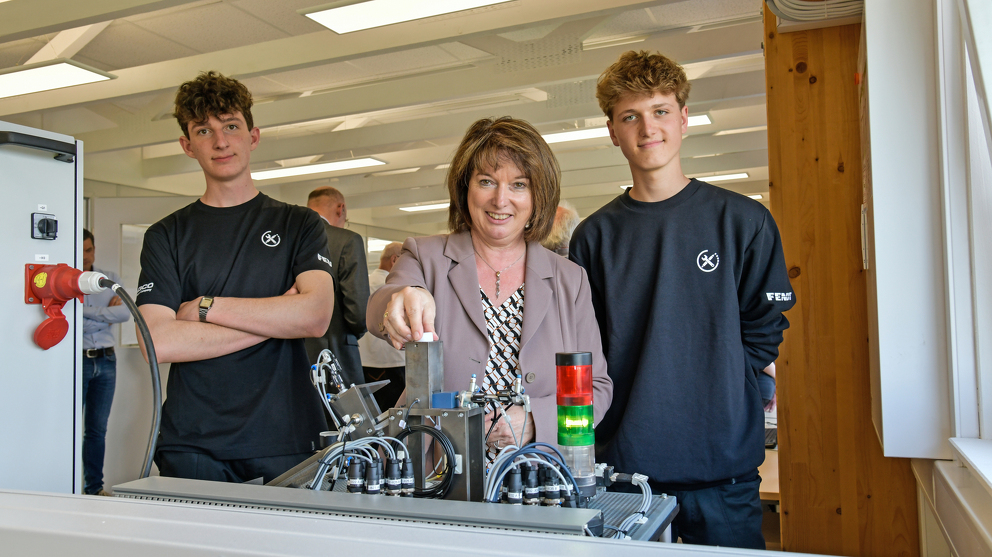 Apprentices in commercial and industrial-technical fields learn practical and theoretical knowledge for their future careers in the new training workshop. In addition to the apprenticeships for industrial mechanic, warehouse logistics specialist, mechatronics technician and industrial clerk, the apprenticeships for IT specialist for digital networking/application development/system integration (since 2022), metal technology specialist - assembly technology (since 2021) and technical product designer (since 2017) have been added.