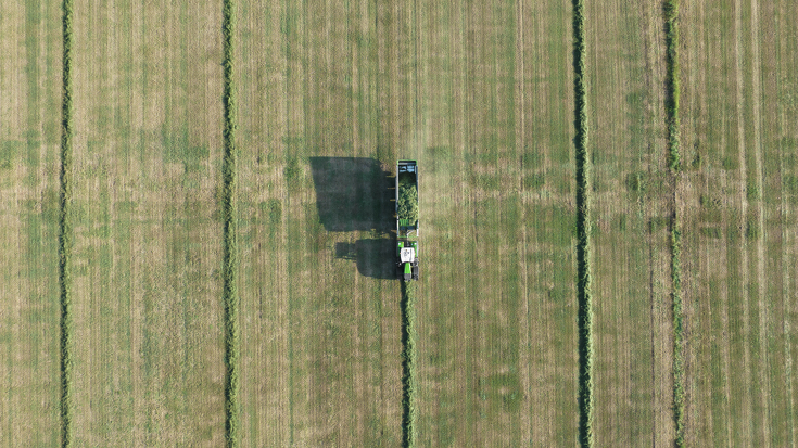 Due to the high dry matter content, the areas were mown one hour before the trial and then raked with a Fendt Former 14055. The tractor pulling the rake was equipped with a track guidance system to create as even a swath as possible. The swath spacing was between 18 and 24 metres.