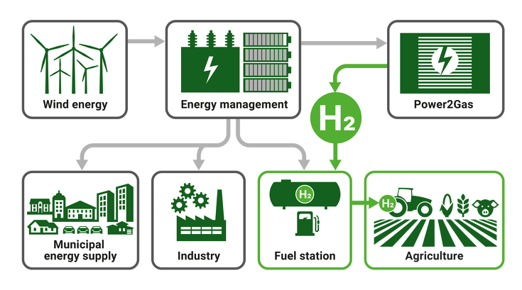 In the joint project H2Agrar and project Green H2 Hub-Haren, the state of Lower Saxony, Germany is funding the development of a hydrogen infrastructure in the Emsland model region. The green hydrogen is produced with the help of green energy from a local citizens' wind farm. This is to be used primarily in the mobility sector and in agriculture. To this end, an infrastructure with its own filling station park for alternative fuels such as hydrogen, but also e-charging stations, is being built. AGCO/Fendt is working on the project together with CEC Haren GmbH & Co. KG, Röchling Engineering Plastics SE & Co. KG, Braunschweig Technical University and Emden/Leer University of Applied Sciences.