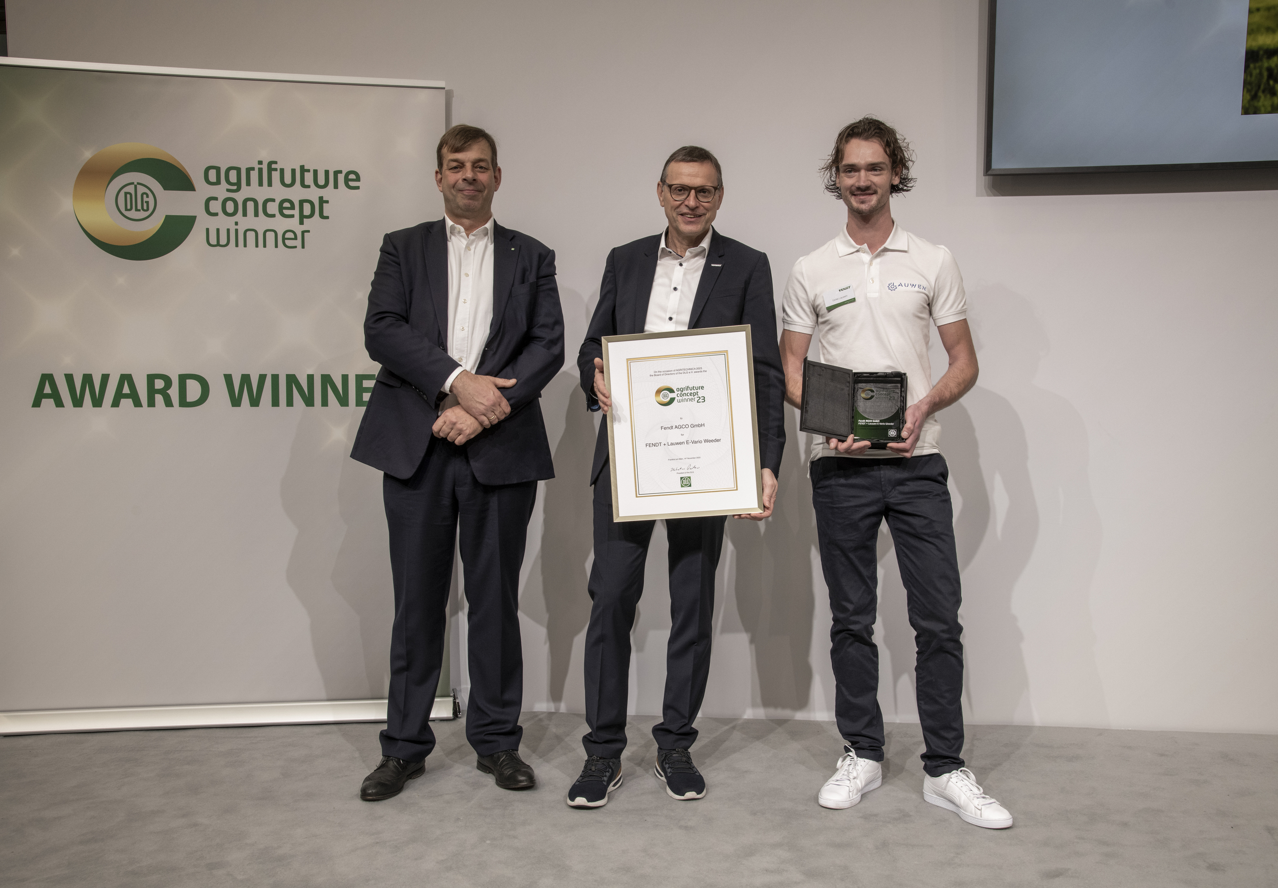 (Da sinistra a destra) Hubertus Paetow (Presidente della DLG), Walter Wagner (Amministratore delegato Ricerca e Sviluppo Fendt) e Eerke Lauwen (Amministratore delegato Agro Lauwen Engineering)
