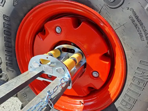 Il dispositivo di sollevamento è in grado di sostenere diverse zavorre con un peso fino a 1.250 chilogrammi e un diametro interno di almeno 400 millimetri. L’utensile viene prelevato con una forca per pallet e fissato tramite catena. Grazie alle ruote per carichi pesanti, la zavorra può essere facilmente adattata allo schema di foratura nel cerchio. In questo modo le utilizzatrici e gli utilizzatori possono montare o smontare le zavorre in modo rapido, sicuro ed ergonomico.