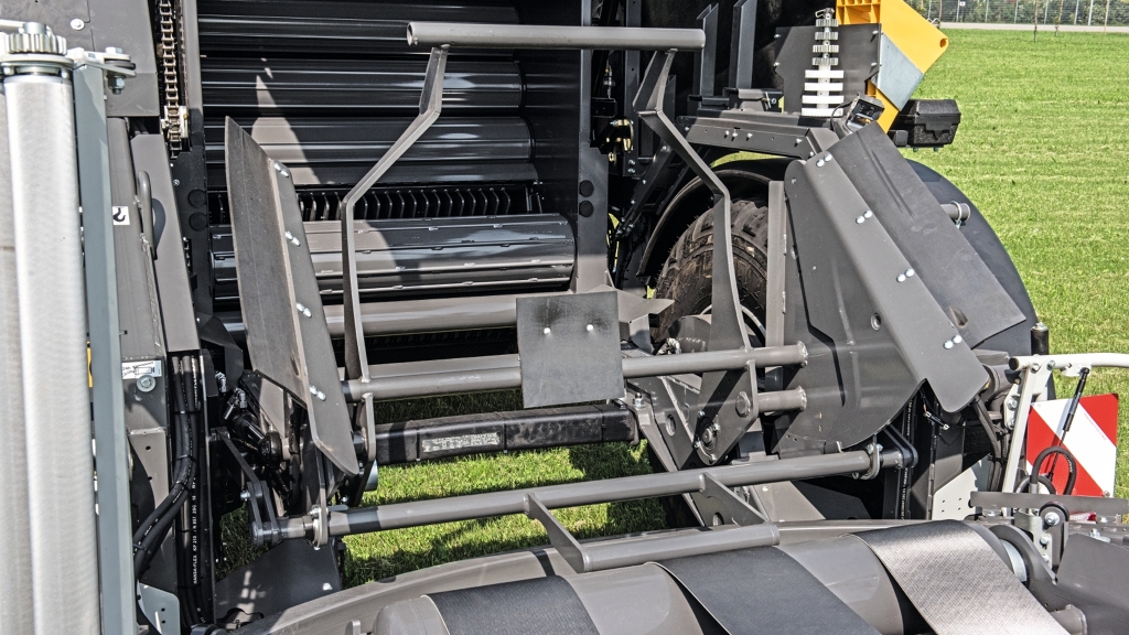 Aktywnie sterowane blaszane prowadnice towarzyszą beli od komory do stołu owijarki. Zapewnia to największe możliwe bezpieczeństwo przekazania beli nawet na zboczach.