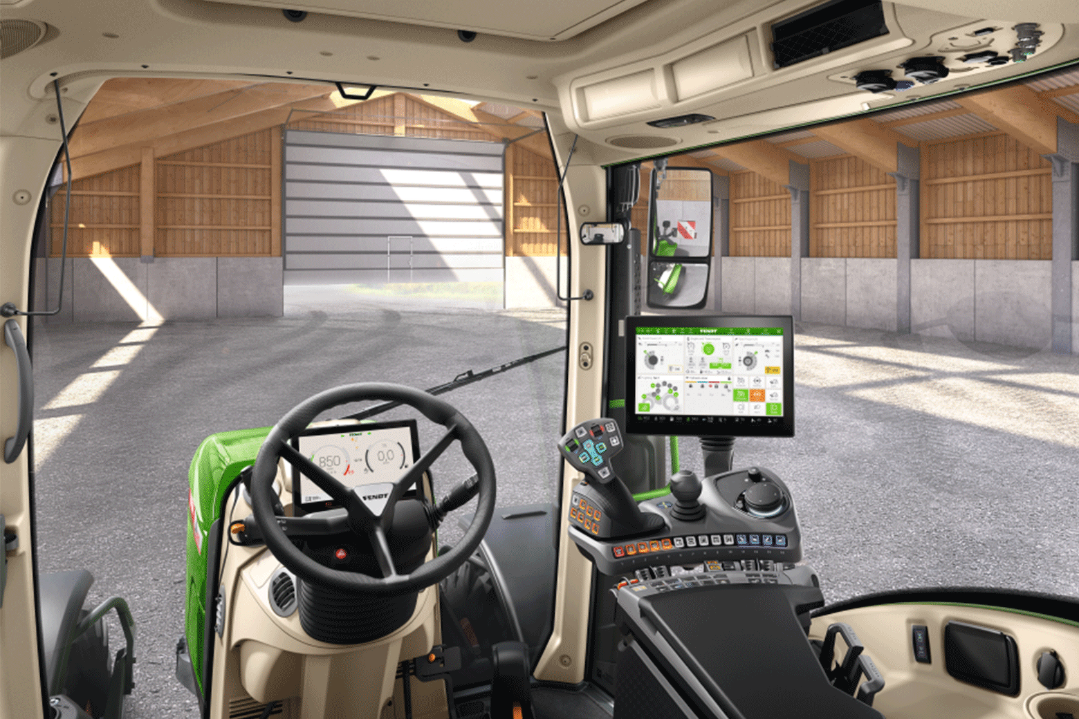 Po raz pierwszy intuicyjna filozofia obsługi FendtONE łączy obsługę maszyny z możliwością bezpośredniej komunikacji z biurem. Rozwiązanie to jest wzbogacone o opcjonalny system audio-informacyjny z głośnikami w konfiguracji 4.1. Nowe stanowisko pracy kierowcy obejmuje dużą, 10-calową deskę rozdzielczą, podłokietnik z wielofunkcyjnym joystickiem oraz, w zależności od konfiguracji, 12-calowy terminal. Dzięki podłokietnikowi przytwierdzonemu do fotela ustawienia można łatwo zmieniać bez konieczności ruszania się z miejsca. W kabinie znajduje się również drugi, opcjonalny 12-calowy terminal, który można złożyć do połowy i schować w dachu. Joystick 3L otwiera przed operatorem nowe możliwości.