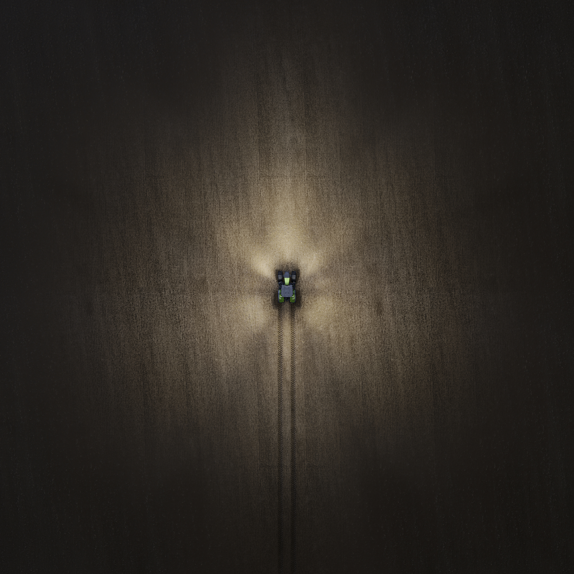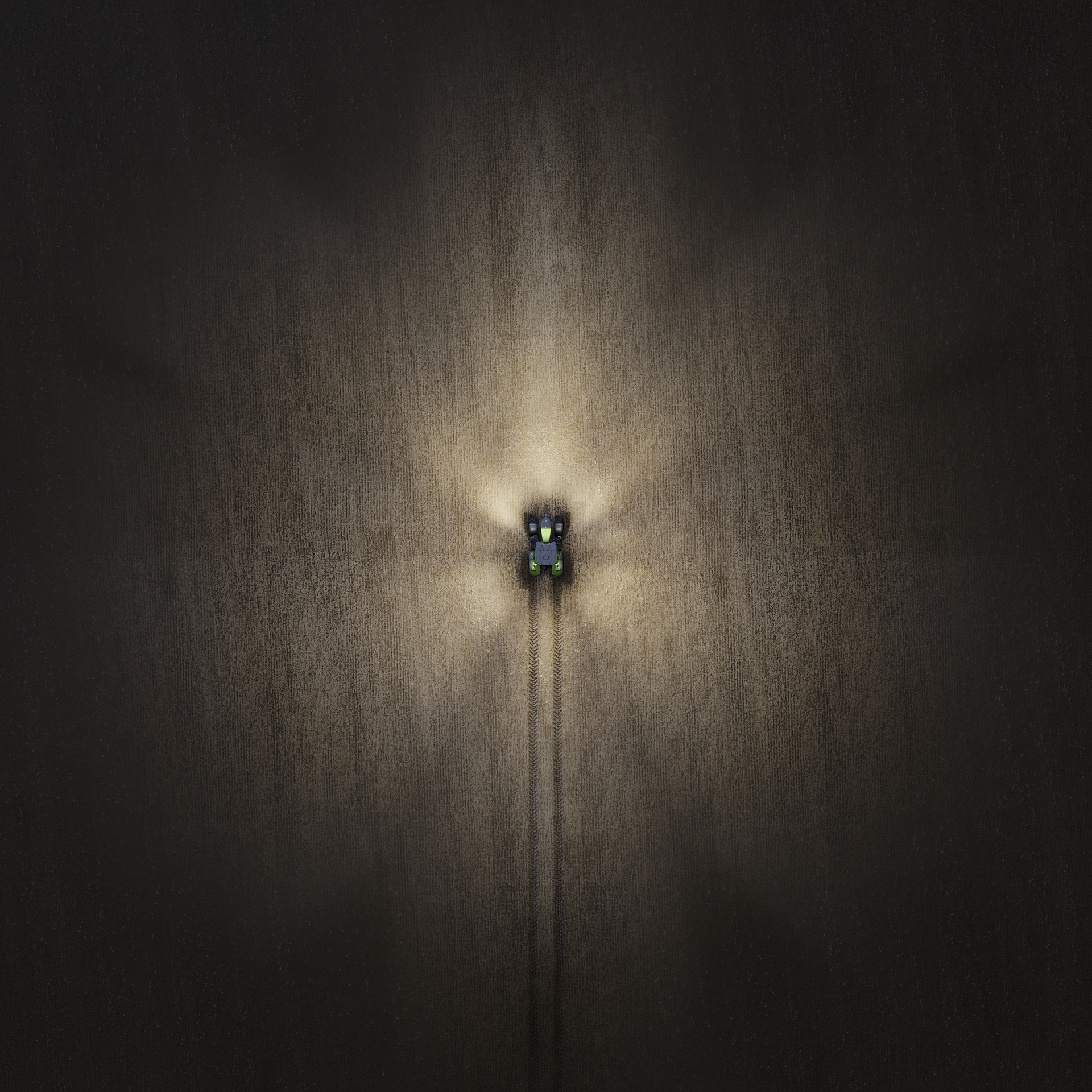 Dobra widoczność do przodu, a także na maszynę roboczą i cały obszar roboczy, ma kluczowe znaczenie dla bieżącego monitorowania efektów pracy. Reflektory LED dostępne są w dwóch wariantach wyposażenia: Vision i UltraVision. W obu wariantach w dachu kabiny można zamontować 8 lub 12 reflektorów. W wariancie UltraVision ciągnik oświetla powierzchnię z mocą 4400 lumenów na reflektor, przy czym reflektory można ściemniać w 5 stopniach. Funkcja ta jest szczególnie pomocna, gdy na jednej powierzchni pracuje wiele maszyn. Opcja wyposażenia Vision oferuje 1000 lumenów na reflektor. Wszystkie reflektory, łącznie ze światłem ostrzegawczym, są na stałe zintegrowane z dachem kabiny i rozmieszczone w sposób zapewniający optymalne oświetlenie do pracy w zastosowaniach rolniczych – bez oślepiania. To zwiększa komfort i bezpieczeństwo.