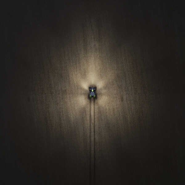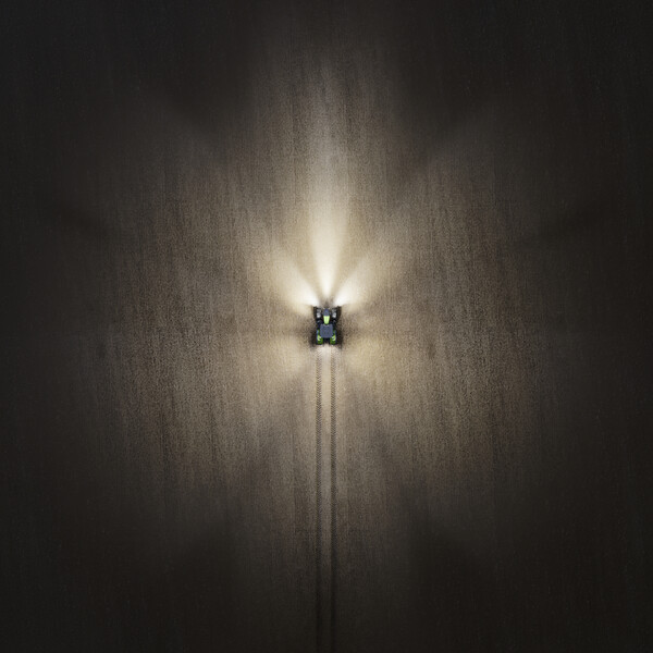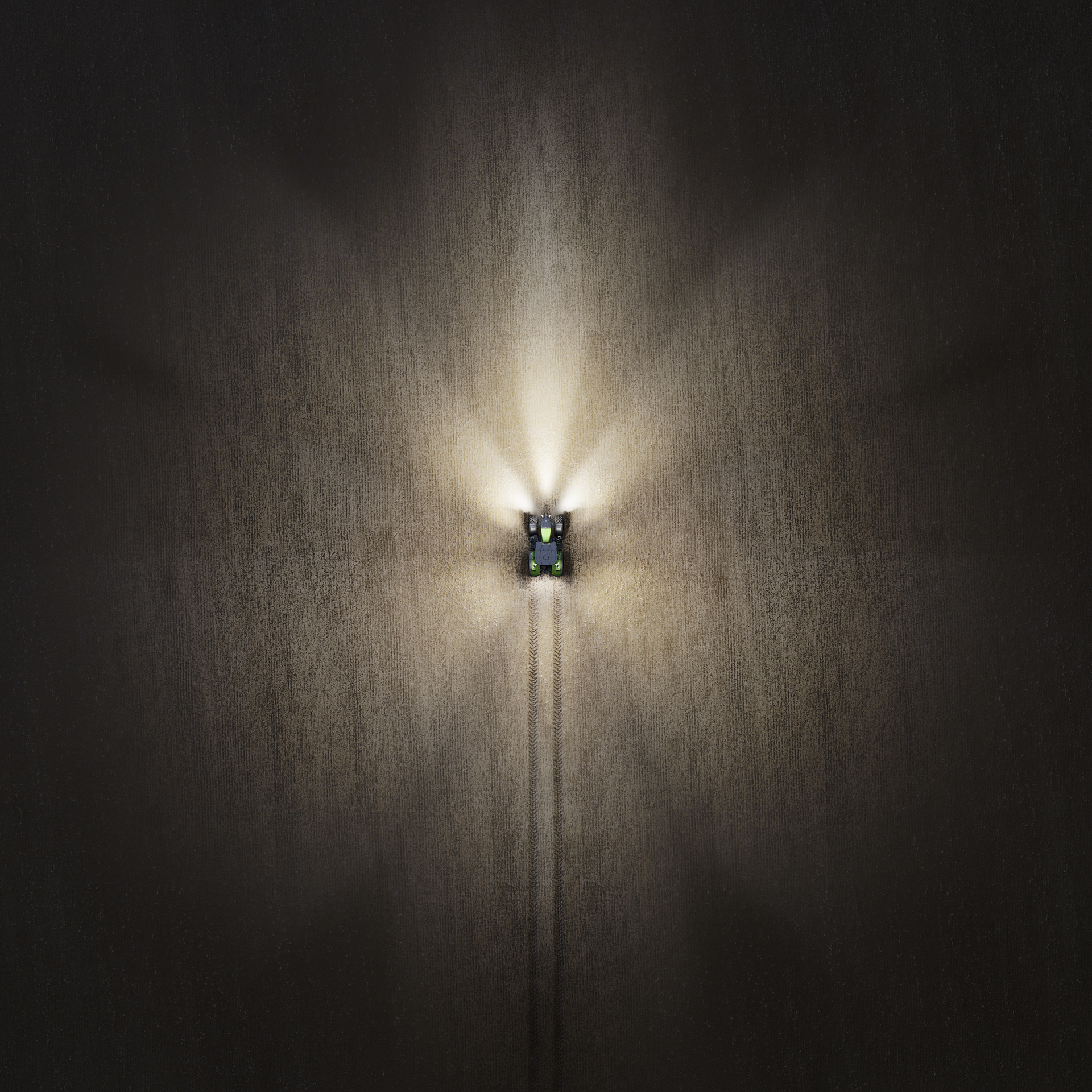 Dla wygodnej i szybkiej obsługi oświetlenia roboczego użytkownik może zapisać do czterech indywidualnych profili oświetlenia. Na przykład, gdy ciągnik porusza się po lewej stronie sieczkarni polowej, kierowca może przyciemnić oświetlenie po stronie sieczkarni, jednocześnie silnie oświetlając pozostałe otoczenie, aby nie oślepiać operatora maszyny współpracującej. Cała konfiguracja może zostać aktywowana jednym kliknięciem. Funkcja ta jest szczególnie przydatna, gdy operator sieczkarni dostosowuje się do toru jazdy ciągnika, np. podczas pracy w polu kukurydzy. Nowością jest również niezależne sterowanie poszczególnymi reflektorami. W przypadku zmiany pogody – wystąpienia mgły lub deszczu – intensywność oświetlenia można szybko dostosować do warunków.