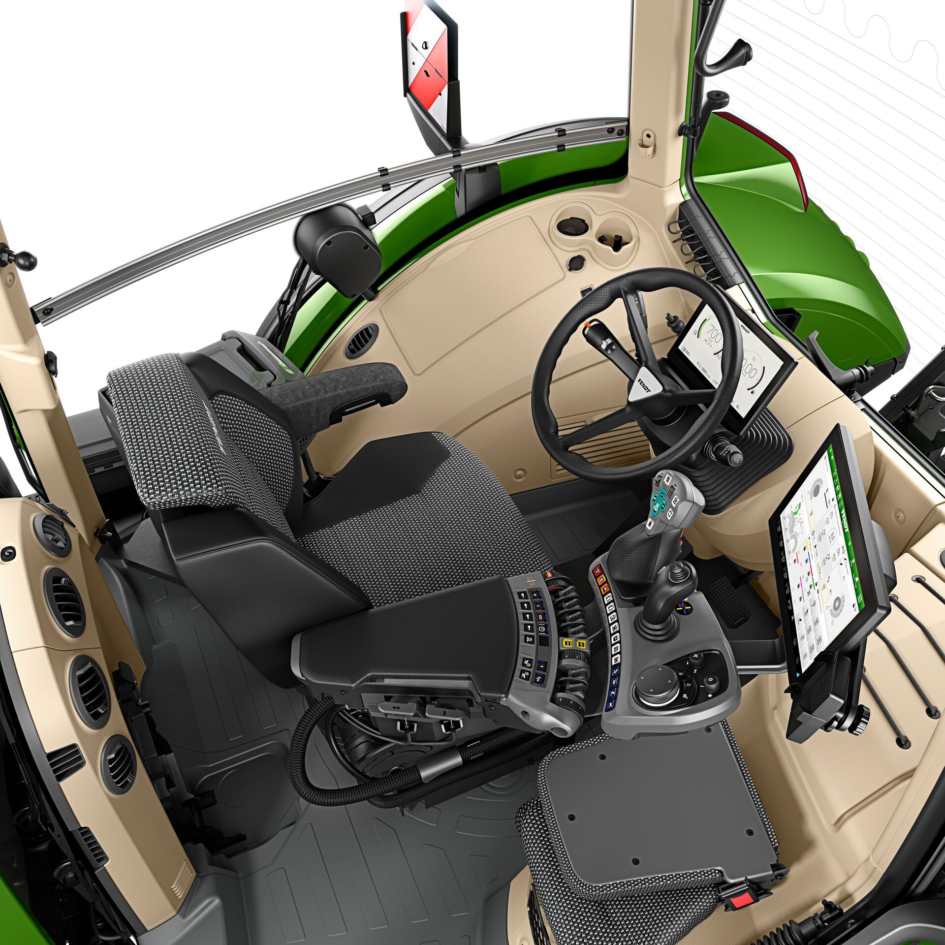 Długie dni pracy stawiają kierowcy wysokie wymagania, dlatego kabina ciągnika oferuje liczne opcje wyposażenia zwiększające komfort pracy. Wszystkie wersje wyposażenia posiadają stanowisko pracy FendtONE z podłokietnikiem i do trzech ekranów (Profi i Profi+). Nowością są opcjonalne podnóżki na kolumnie kierowniczej oraz konsoli bocznej, umożliwiające wygodniejsze ułożenie nóg.
