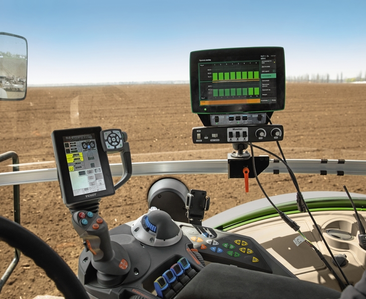 Os parâmetros de plantio são controlados de forma inteligente pelo monitor 20|20®. Usando dezenas de sensores, a Fendt MOMENTUM consulta os dados das linhas de plantio sobre a pressão de lastro da fileira, contato com o solo, precisão de singulação, posicionamento de sementes, capacidade de plantio e distribuição de fertilizante líquido - então analisa e visualiza isso em tempo real. Estas informações são usadas para a adaptação contínua da máquina às condições. O monitor 20|20® oferece uma visão geral clara e uma análise de dados de máquina imbatível.