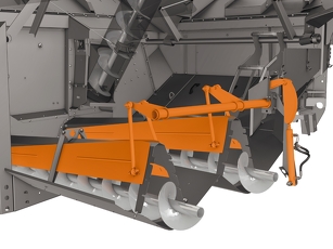 Отдельный домолот: Специально разработанная система домолота для максимальной производительности. Масса вымолачивается шнеком и поступает на скатную доску. Это позволяет избежать снижения мощности обмолота на роторах. Обмолот происходит между шнеком и взаимозаменяемыми крышками, которые могут иметь рифленую или гладкую поверхность в зависимости от желаемой интенсивности обмолота.