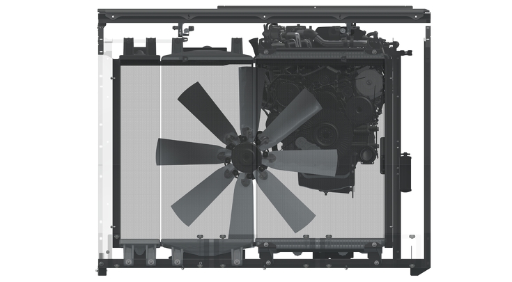 Система охлаждения является ключевым компонентом, который гарантирует эффективную и надежную работу двигателей в любых условиях. Система охлаждения AirSense® была специально разработана для Fendt IDEAL. Задача состояла в том, чтобы обеспечить максимальную мощность охлаждения с минимальными затратами энергии на очистку. Система охлаждения AirSense® состоит из реверсивного вентилятора 950 мм и зоны охлаждения площадью 2,7 м². Воздух выдувается наружу централизованно через решетку радиатора на верхней панели Fendt IDEAL. В зависимости от температуры и продолжительности работы вентилятор автоматически меняет направление вращения и надежно очищает радиатор.