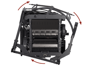 Den nya svängramen har en utökad svängvinkel på upp till 14° så att skördeaggregaten kan följa marken med ännu högre precision. Katanas pendelram och beröringssensorerna på skördeaggregaten anpassar sig automatiskt även till extrema ändringar i markkonturen. Den centrala vridpunkten för svängramen innebär att grödans flöde förblir likformigt även när skördeaggregatet kompenserar för lutning. Alla skördeaggregat är monterade nära fordonet. Detta reducerar belastningen på framaxeln och skyddar marken.