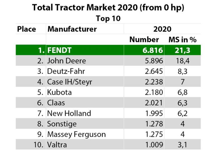 «У 2020 р. кожен п'ятий зареєстрований трактор був Fendt Vario. Збільшення нашим брендом частки ринку на 1,6% у порівнянні з 2019 р. є видатним досягненням німецького відділу продажів Fendt, а також наших дилерів. Без гнучкості і безперервної роботи торгового партнера в особливому для всіх 2020 р., який супроводжувався пандемією коронавірусу, такий приголомшливий результат був би неможливий», — пояснює директор з продажу Fendt у Німеччині Андреас Льовель.