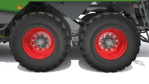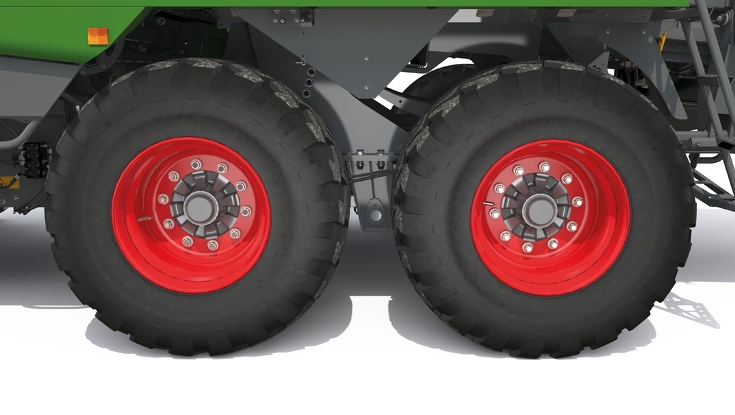 All square balers with tandem axle for the 2023 model year will be equipped with a new improved suspension system and passive steering axle as standard. The design increases manoeuvrability and avoids damage to the ground and turf. In addition, all models will be equipped with larger tyres as standard compared to the previous generation. With the 620/50R-22.5 tyre dimension, the outer width of the balers remains under 3 m. The lubrication strip enables lubrication of the baler to be carried out quickly and easily and reduces maintenance times.